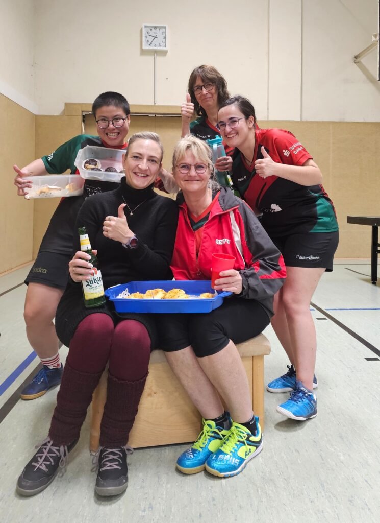 Nachdem unser Damenquartett aus der 11. Mannschaft am Donnerstag unterlegen waren, konnte unser anderes Damenquartett aus der 12. Mannschaft am Freitag gewinnen! Geburtstagskind Katrin, Marta, Hien, Marion B. sowie Marion A. als Coach machten sich auf dem Weg zum TTV Top Spin Bernau 8.
