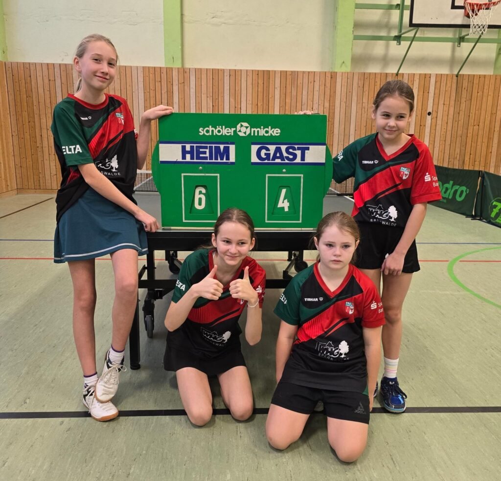 Ein Heimspiel hatte unsere 2. Jugendmannschaft. Gegen den TTV Top Spin Bernau 4 war trotz der ungleichen Größenverhältnisse ein offenes Spiel zu erwarten. Tatsächlich konnte unser Mädchenquartett, Hanna, Bea, Karla und Marie auch gut Gegenwehr leisten und am Ende mit 6:4 gewinnen. Schön war das alle 4 Spielerinnen am Endergebnis beteiligt waren, auch wenn Spitzenspielerin Hanna mit 3 Punkten besonders überzeugte.