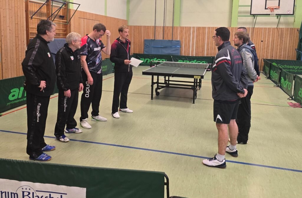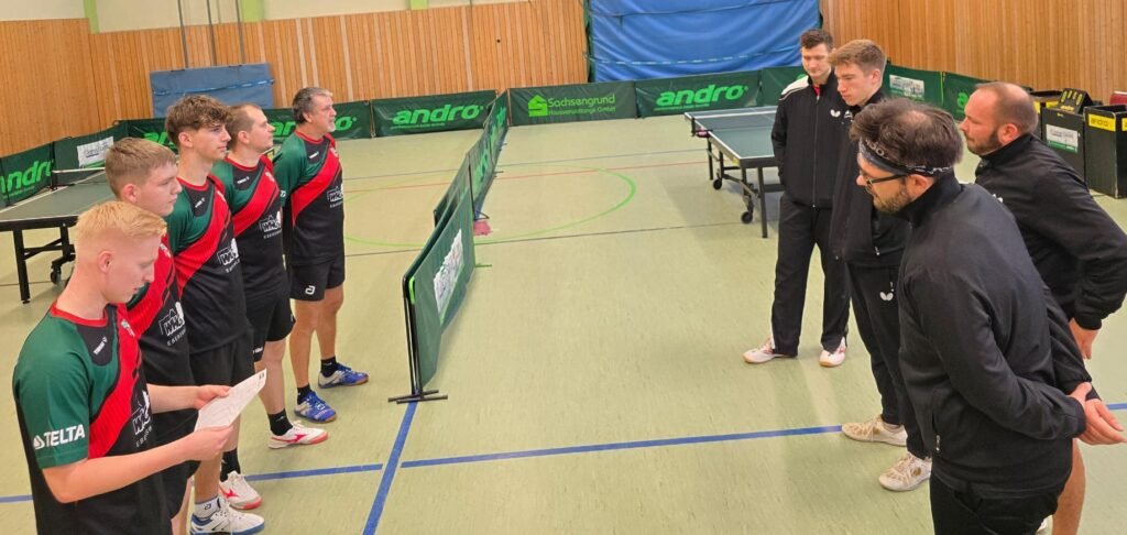Anschließend ging unsere 1. Herrenmannschaft in der Bahnhofsstraße an die Tische. Zu Gast war der CfL Berlin und die Hoffnungen auf den 1. Sieg waren groß. Aber auch die Gäste wollten wichtige Punkte im Abstiegskampf sammeln. Mal wieder unterstütze Holm unser Team im Doppel, schließlich war er zusammen mit Matti noch ungeschlagen. Diesmal ging das Match gegen das Spitzendoppel aus Berlin leider im 5. Satz an die Gäste. Ebenfalls im 5. Satz unterlegen waren Tom und Erik.