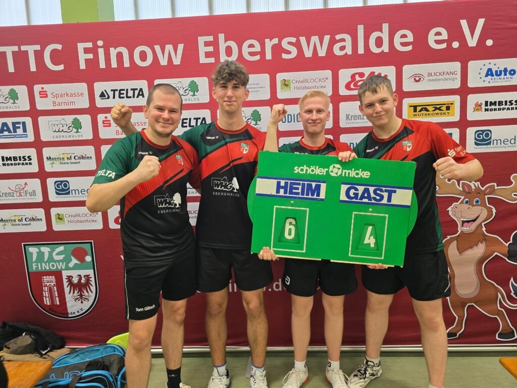 Beim SV Motor Eberswalde war unsere 5. Schülermannschaft zu Gast. Jayden, Tessa, Carolin und Finn zeigte eine wirklich starke Leistung und gewannen mit 9:1. Besonders toll war das Finn erstmals ohne Niederlage in einem Mannschaftskampf blieb. Sein 1. Einzel gewann er noch nach 0:2 Rückstand mit 3:2.