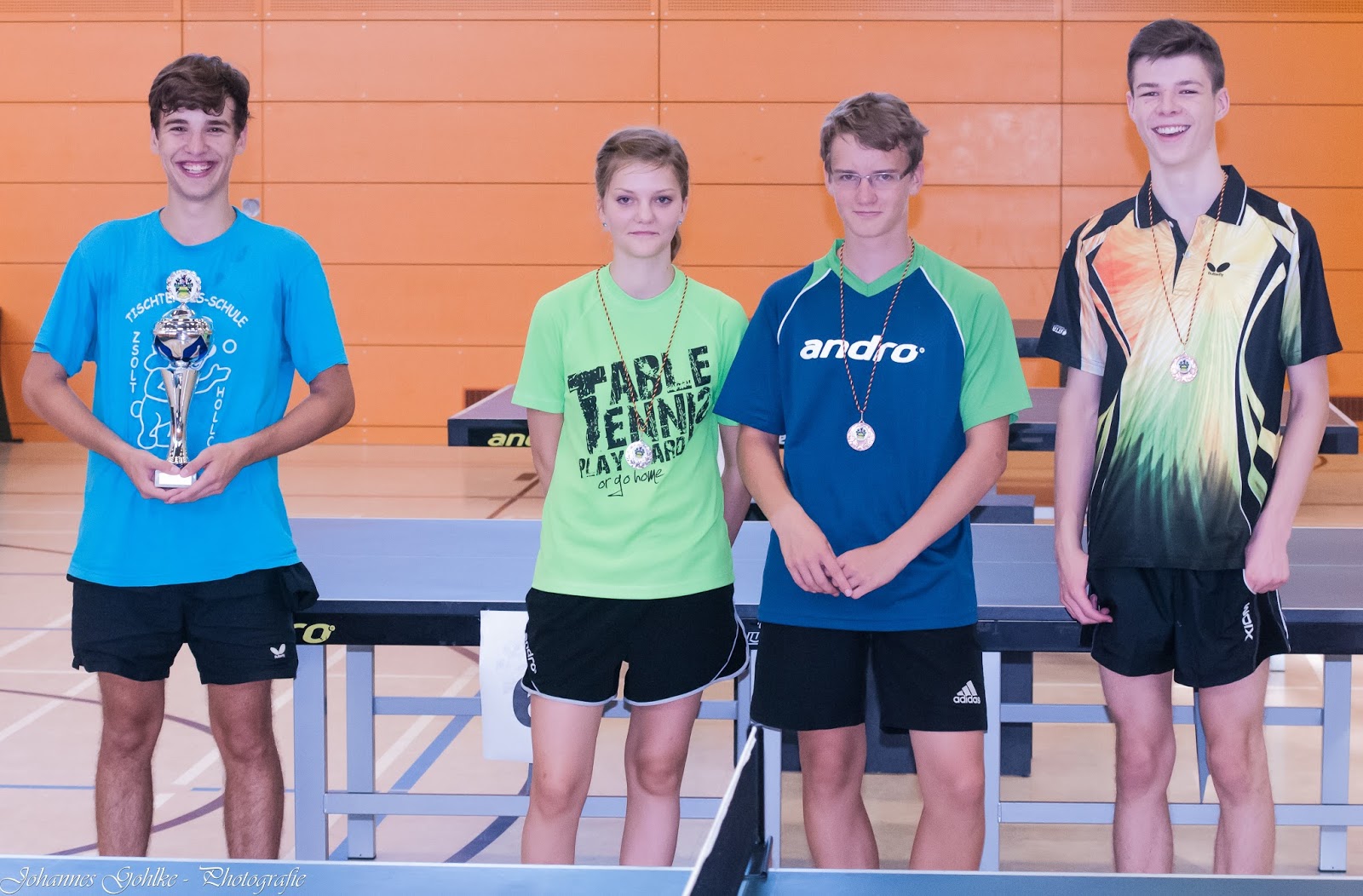Während unsere „Erwachsenen“ Teilnehmer Johannes und Benny im 4er-Tisch Doppel ohne Medaille blieben, räumte unser Nachwuchs kräftig ab.