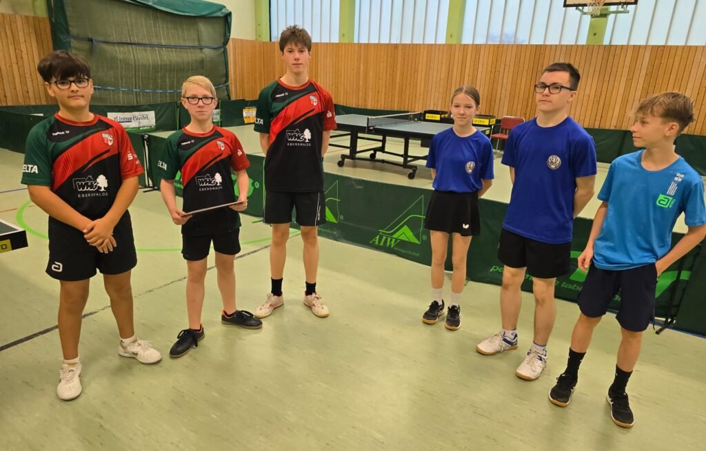 Unsere 5. Schülermannschaft trat beim TTV Top Spin Bernau III an. Leo gab sein Punktspiel-Comeback und spielte gemeinsam mit Finn, Patrick und Erwin. Trotz engagiertem Auftritt reichte es nur zu einem Punkt durch Finn; drei weitere Spiele gingen unglücklich im 5. Satz verloren.