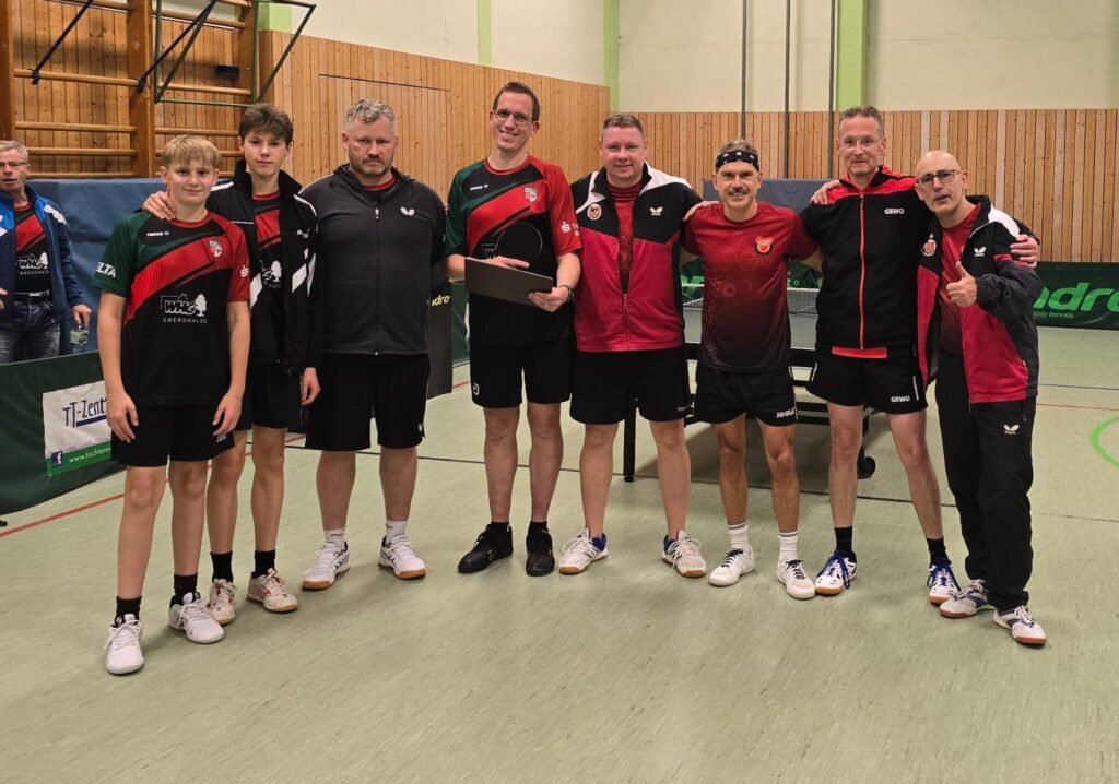 Zeitgleich trat die 4. Herren gegen TTC Rotation Leegebruch II an. In Stammbesetzung mit Nino, Karl, Hannes und Ben zeigte das Team eine geschlossene Leistung. Karl und Ben punkteten dreifach, Nino steuerte 2,5 Zähler bei – ein verdienter 9:5-Sieg!