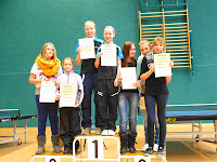 Im A-Schülerinnenwettbewerb konnten gleich alle drei Podestplätze von den Finowerinnen betreten werden. Den obersten sicherte sich Annie, vor Isa. Gemeinsame Dritte wurden Marie und Kathi. Auch im Doppel gewann die Finower Paarung Isa und Annie im Finale gegen Marie/Lena. Emely konnte mit ihrer Partnerin aus Hohen Neuendorf einen dritten Platz erzielen.