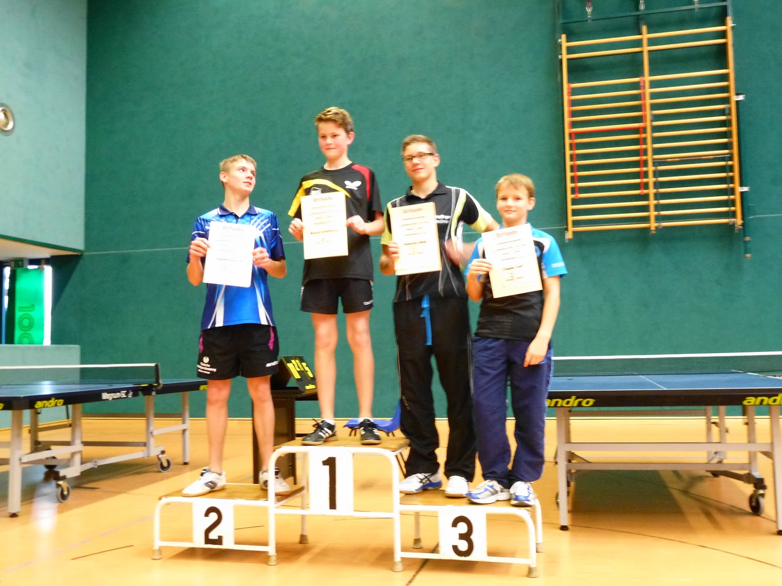 Bei den männlichen Spielern dieser Altersklasse konnte Johann ohne Gefahr durch das Turnier schreiten. Im Finale setzte er sich gegen seinen Vereinskumpel Tom durch. Tom nahm einen schwierigen Weg und konnte gegen Joey Voss von Prenzlau und anschließend gegen Moritz Peter von Schwedt gewinnen. Zwei Siege gegen Konkurrenten, gegen die er bisher in offiziellen Vergleichen noch nicht erfolgreich war. Zusammen konnten Tom und Johann auch den Doppeltitel nach Finow holen.