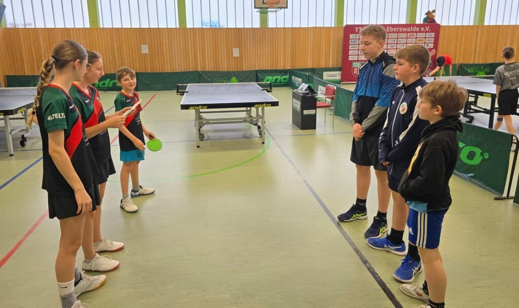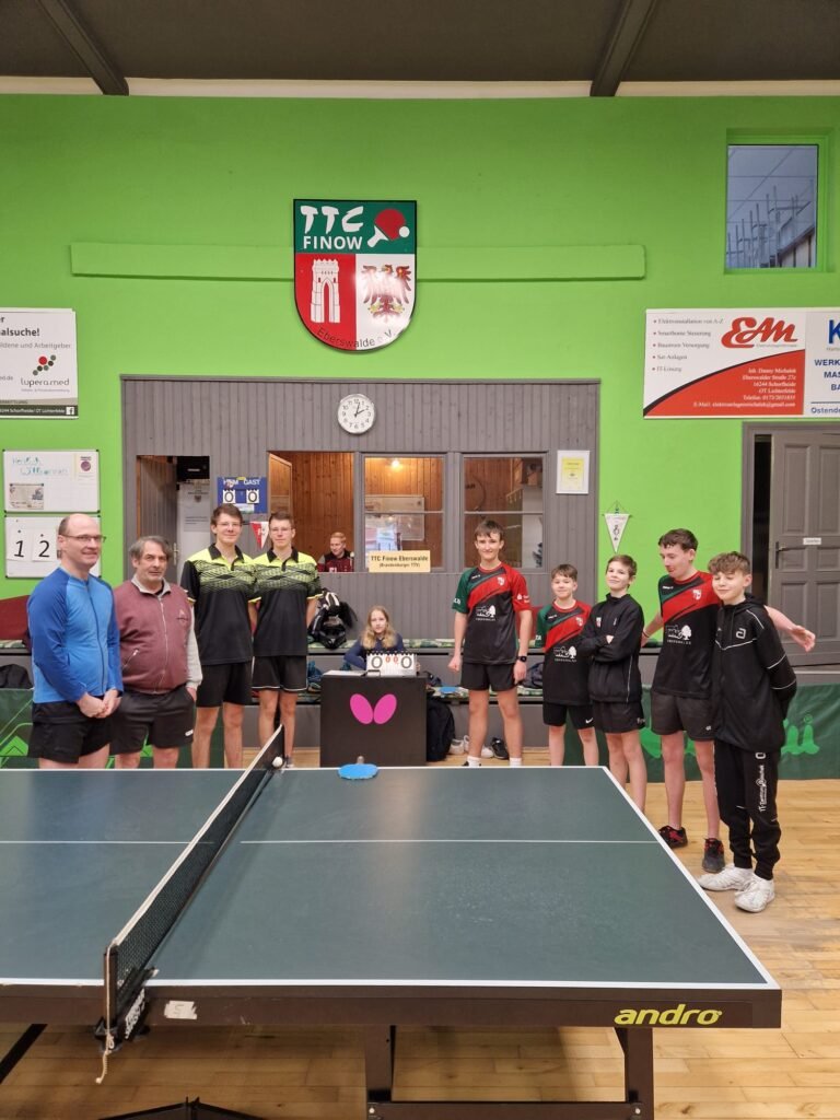 Nebenan wurde unsere 3. Schülermannschaft vom Spitzenreiter der Landesliga Jugend 15, dem TTC Frankfurt (Oder) gefordert. Für den erkrankten Niklas, sprang Max als Spitzenspieler ein. Max gewann souverän seine Spiele und auch Toni sowie Oskar blieben ungeschlagen. Lediglich das Doppel und ein Einzel von Jayden gingen an die Gäste, so dass sich unser Team über einen klaren 8:2 Sieg freute.