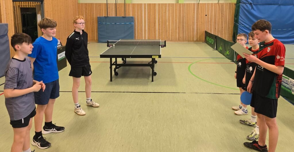 Gleich nach dem Spiel der 2. Herren begann das Spiel unserer 1. Schüler, bei dem Ben erneut mitwirkte. Außerdem war auch Nils dabei, und als kurzfristig organisierter Ersatzmann sprang Arne dankenswerter Weise ein. Als Coach unterstützte spontan Erik das Team. Ben und Nils hatten wie erhofft alles im Griff. Arne konnte überraschend gleich zwei Einzel gewinnen und zeigte eine sehr starke Leistung. So fiel der Sieg mit 9:1 am Ende sehr klar aus. Glückwunsch, Jungs!
