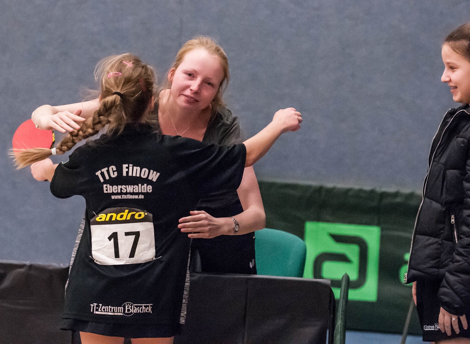 Bestens eingestellt von ihrem Coach Annie lieferte sie sich mit der Hohen Neuendorferin ein spannendes Match. Trotz erster Tränen nach 1:2 Rückstand, behielt Luisa die Nerven und entschied die nächsten zwei Sätze für sich. Die Sensation war somit perfekt und die Freudentränen bei Annie sowie einigen anderen Finowern zeigten, wie sehr der trainingsfleißigen 10-jährigen dieser Sieg gegönnt wurde.