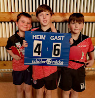 Max, der zwei Wochen krankheitsbedingt nicht trainieren konnte, konnte leider noch kein Einzel für sich entscheiden, dafür aber das Doppel mit mir. Ich konnte immerhin trotz mäßiger Form 2,5 Punkte zum Endergebnis beisteuern. Insgesamt konnten wir somit am Ende mit 8:6 gewinnen und stehen dadurch plötzlich auf dem 3. Tabellenplatz. Evtl. könnten wir zwar noch auf den 4. Platz abrutschen, aber mit so einem guten Ergebnis hätten wir trotzdem vor der Saison niemals gerechnet.