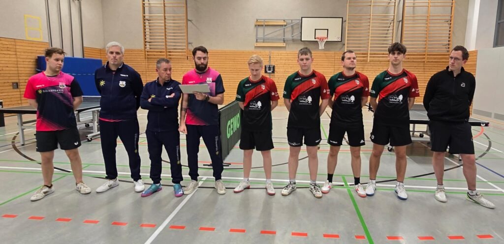 In Dahlewitz war unsere 2. Herrenmannschaft am Sonntag zu Gast. Gegen die abstiegsbedrohten Gastgeber wollten André, Holm, Erik und Johannes möglichst gewinnen, um den Puffer auf die Abstiegsränge auszubauen.Nach einer Punkteteilung in den Doppeln zeigte in den Einzeln besonders Spitzenspieler André seine Klasse. Nachdem er in der Woche nicht trainieren konnte, verabredete er sich extra noch am Samstag zum Training mit Holm und Erik, was sich am Sonntag auszahlte, denn er gewann alle drei Einzel! Holm ging leider angeschlagen ins Match, denn aufgrund einer Oberschenkelzerrung konnte er sich nur eingeschränkt bewegen. Am Ende reichte es immerhin für einen Punkt für den Senior der Mannschaft. Sein Bruder Erik konnte im unteren Paarkreuz seine Spiele sicher gewinnen, ehe er gegen den Spitzenspieler der Gastgeber nach gewonnenem ersten Satz chancenlos war. Johannes hatte leider nicht seinen allerbesten Tag erwischt und musste auch die Stärke seiner Gegner anerkennen. Am Ende blieb er leider ohne Punktgewinn. Dennoch freute sich das Team über ein gerechtes Unentschieden, was immerhin ein kleiner Schritt zum anvisierten Klassenerhalt ist. Beim anschließenden Restaurantbesuch wurde das Match ausgewertet und über alte Zeiten geschwärmt. Vielen Dank auch an Burkhard, der als Zähler sowohl unsere 1. Damen als auch die 1. Herren und 2. Herren unterstützte