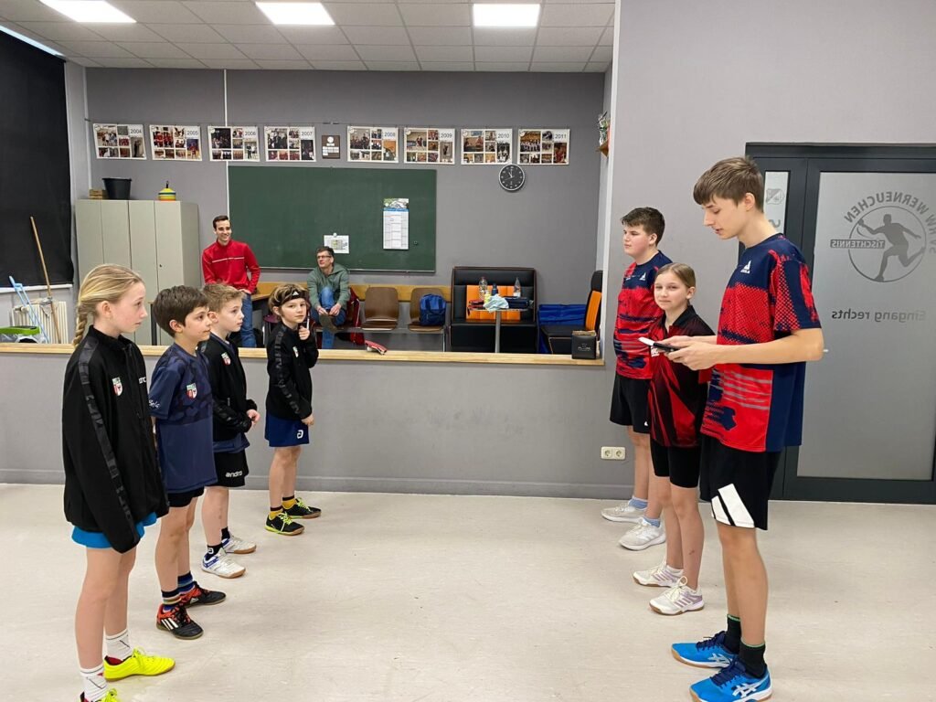 In Werneuchen war am Sonntag unsere 5. Schülermannschaft zu Gast. Für den kurzfristig krankgewordenen Max sprang Bea ein, so dass Gregor, Arne, Bela und Bea versuchten den durchweg älteren Gastgebern Parolie zu bieten. Das klappt besonders bei Gregor sehr gut. Der 7-Jährige gewann nämlich alle 3 Einzel, zwei davon in der Verlängerung des 5. Satzes. Das Doppel der beiden 7-Jährigen Linkshänder Gregor und Arne ging leider knapp mit 12:10 im 5. Satz verloren. Ein weiterer Einzelpunkt kam leider nicht dazu, doch Coach Alina war mit dem Team dennoch zufrieden. Glückwunsch zum guten Auftritt trotz der 3:7 Niederlage!