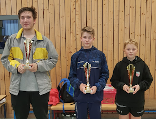 Für Hilmar, Burkhard, Collin und Malte war leider schon nach der Vorrunde das Einzelturnier beendet. Martin und Bruno verabschiedeten sich nach dem Achtelfinale aus dem Turnier. Im Doppelwettbewerb schafften es Louis und Jojo zusammen aufs oberste Treppchen. Beide gewannen alle Spiele 3:0 und waren somit verdiente Turniersieger. Unsere anderen männlichen Doppel schnitten nicht wirklich erfolgreich ab.