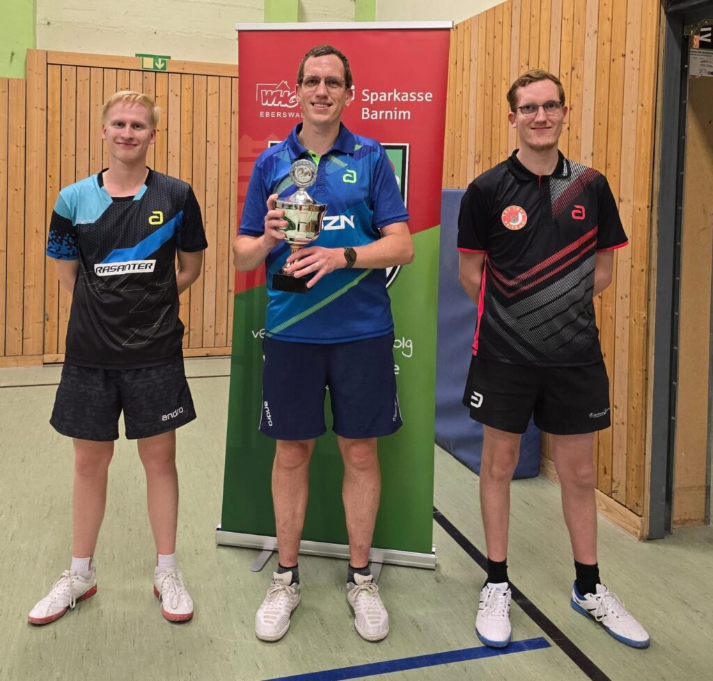 Gespielt wurde in einer 5er- und einer 6er-Gruppe, jeweils auf zwei Gewinnsätze. Das Teilnehmerfeld war recht jung, doch am Ende standen sich mit Matti und Johannes die beiden Favoriten im Finale gegenüber. Es entwickelte sich ein packendes Duell: Matti führte im fünften Satz bereits mit 9:3, doch Johannes kämpfte sich Punkt für Punkt zurück und drehte das Spiel noch zu seinen Gunsten. Mit 11:9 im Entscheidungssatz sicherte er sich den Turniersieg. Den dritten Platz teilten sich Nino und Michael, der Bruder von Johannes.