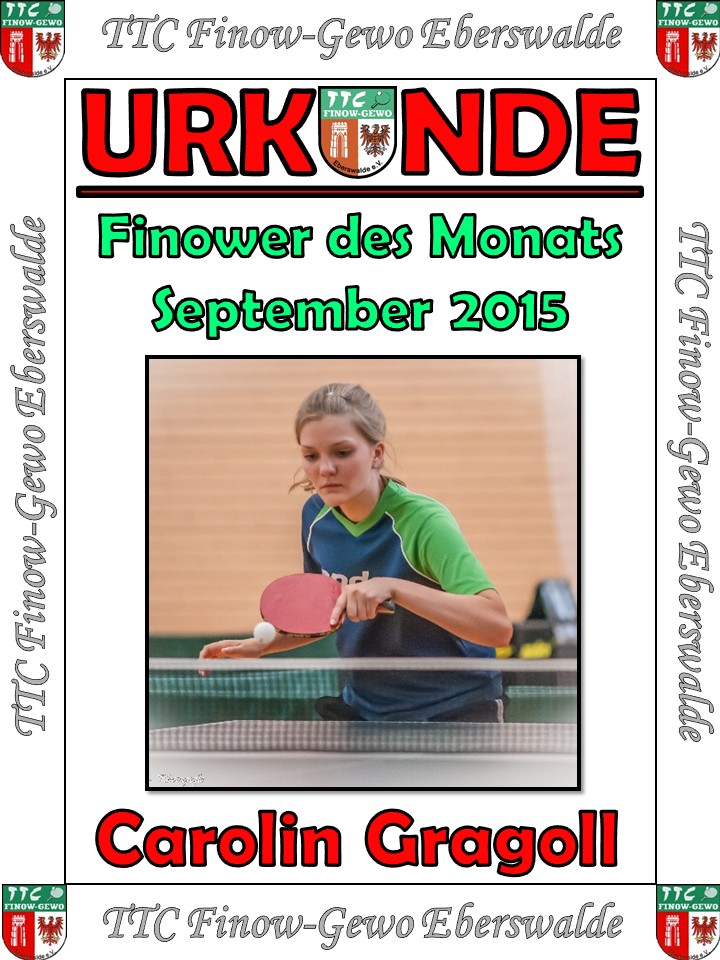 Genau 50 Stimmen wurden in den vergangen 5 Tagen bei der Wahl zum Finower des Monats abgegeben. Nach einem anfänglichen Zweikampf zwischen Marc und Carolin Mews, überholte Carolin Gragoll am Sonntag und Montag noch ihre 2 Konkurrenten und konnte somit zum Ende mit 32% aller Stimmen die Wahl gewinnen!