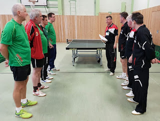 Revanche souverän geglückt – so lässt sich das Ergebnis des vereinsinternen Duells gegen unsere zweite Vertretung wohl am besten zusammenfassen. Bereits nach den Doppeln standen die Zeichen für uns auf Sieg. Thilo und Thoralf gewannen das 1er Doppel gegen Johann und Hannes mit 3:1. Egon und Benny hatten beim 3:0 über Johannes und Tom wenig Mühe. Auch die erste Einzelrunde konnten wir komplett für uns verbuchen. Egon bezwang Johannes, der große Gegenwehr leistete, in einem spannenden Duell mit 3:2. Thilo wiederholte seinen Sieg aus der Hinrunde gegen Johann. Benny bezwang Hannes überraschend deutlich mit 3:0 und Thoralf zeigte beim 3:1 über Tom, dass mit seinem gefürchteten Vorhandtopspin wieder zu rechnen ist. Die zweite Einzelrunde verlief dann schon um einiges umkämpfter. Egon konnte leider keine Revanche für die Hinrundenniederlage gegen Johann nehmen und verlor 10:12 im Entscheidungssatz. Kapitän Thilo siegte gegen Johannes zwar mit 3:0, doch dabei wurden zwei Sätze erst in der Verlängerung entschieden. Gegen Tom, den Benny schon unzählige Male betreute und deshalb eigentlich hinreichend kennen sollte, spielte der Team-Jüngste (mit 25 Lenzen – langsam müssen die Jungschen nachrücken!) zu oft taktisch unklug und quälte sich zu einem 3:2-Sieg, wobei er im vierten Satz schon einen Matchball abwehren musste. Dies bedeutete gleichzeitig den umjubelten Endstand von 8:1! Allerdings gilt zu bedenken, dass wir davon profitierten, dass Arvid und Rico nicht für die Zweite an den Start gehen konnten. Hätte nur einer der beiden gespielt, wäre der Rückrundenauftakt aller Voraussicht nach anders verlaufen. Der Zweiten wünschen wir weiterhin viel Erfolg im Aufstiegsrennen! Wir werden versuchen, den derzeit vierten Tabellenplatz noch etwas zu verbessern und dabei Euren Konkurrenten ein Bein zu stellen. Einen großen Dank auch an Thomas, der sich dieses Wochenende für die kommenden Aufgaben schonte, aber die Funktionen als Schriftführer, Coach, Motivator und Bierholer übernahm!