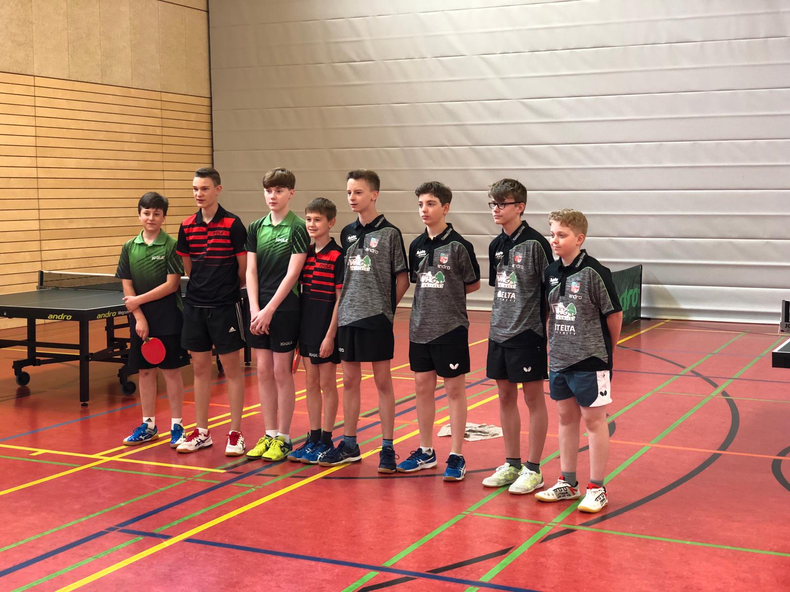 Jojo siegte souverän in seinen Spielen und auch Louis konnte beide Einzel, trotz kleinerer Probleme, gewinnen. Im unteren Paarkreuz konnte Max nach Anfangsschwierigkeiten gewinnen. Malte war es der den Gegnern einen Ehrenpunkt überließ. Nach 5 umkämpften Sätzen musste er leider seinem Gegenüber gratulieren. Am Ende hieß es 6:1 für unsere Schülermannschaft!
