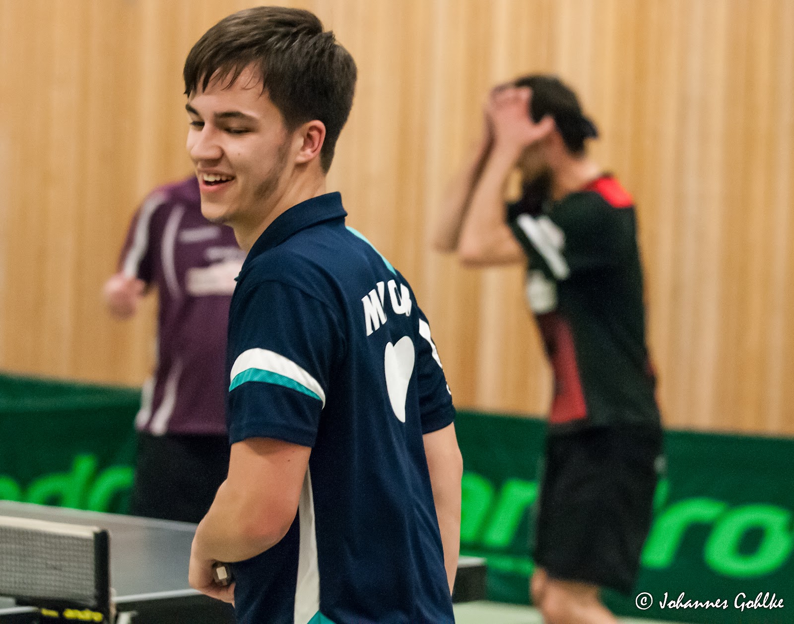 Isa und Ann-Marie erwischten eine 6er Gruppen, mussten dort ebenfalls eine Auftaktniederlage hinnehmen, ehe sie alle weiteren Gruppenspielen gewannen und als Gruppenzweiter ins Achtelfinale einzogen. Ohne Probleme konnten die beiden Teams das Achtelfinale meistern. Im Viertelfinale warteten starke bzw. unangenehme Gegner auf beide Teams. Die Mädels konnten nach tollem Fight 3:2 gegen ein Verbandsligaduo aus Mecklenburg-Vorpommern gewinnen. Tuan und Johannes taten sich als Materialspieler gegen die ebenfalls mit Material agierende Neustädter Paarung sehr schwer und verloren letztendlich 1:3. Nachdem Tuan überraschend, mit 9:11 im 5. Satz, sein 1. Einzel im Turnier verlor, konnte unser Duo nur das Doppel gewinnen.