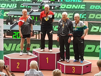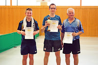 Doch unser Spieler der 5. Mannschaft ragte nicht nur im Einzel heraus. Im Doppel gewann er zusammen mit Peter Gerigk und im Mixed zusammen mit Heidi Wunner ebenfalls den Deutschen Meistertitel! Was für ein Turnier für den ehemaligen Weltranglisten Top30-Spieler!
