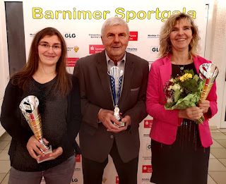 Eingeladen waren zu dieser Veranstaltung die Top3 der Wahl zum Barnimer Sportler des Jahres in den 7 verschiedenen Kategorien. So war Egon als Nominierter bei den Herren Ü18, Claudia als Nominierte bei den Trainern und Katrin als einzige Vertreterin der Nominierten Ü50 Damenmannschaft dabei. Katrin hatte mit Kiki, Annie, Isa und Torsten aber vier andere TTC´ler mitgebracht die ordentlich für positive Stimmung am Tisch sorgten.
