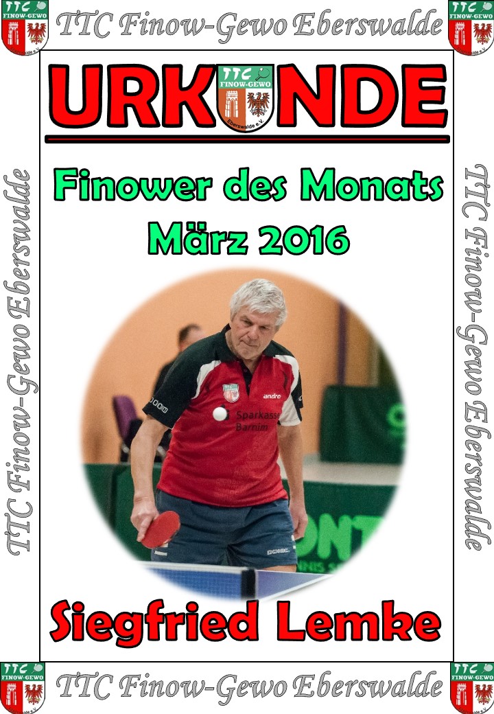 Mit einem deutlichen Vorsprung gewann unser Siegfried „Egon“ Lemke die Wahl zum Finower des Monats März.