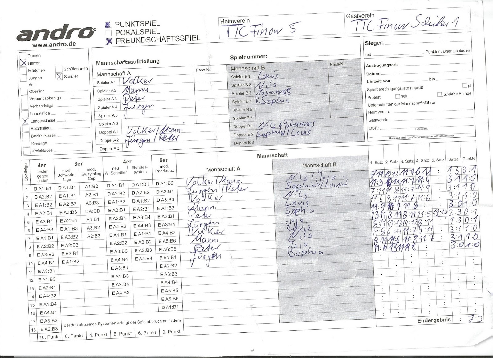 Wir mussten am Freitag auswärts in Lindenberg spielen und haben natürlich wieder mit Louis und Jojo spielen können.
