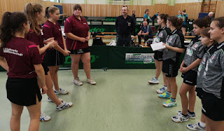 Unser junges oberen Paarkreuz zeigte in den Einzeln das sie mit dem noch jüngeren oberen Paarkreuz der Gäste gut mithalten können. Besonders Annie hatte einen brillianten Tag und gewann sowohl gegen Haupt als auch gegen Wolschina! Isa musste sich leider beiden trotz guter Leistung mit 2:3 geschlagen geben.