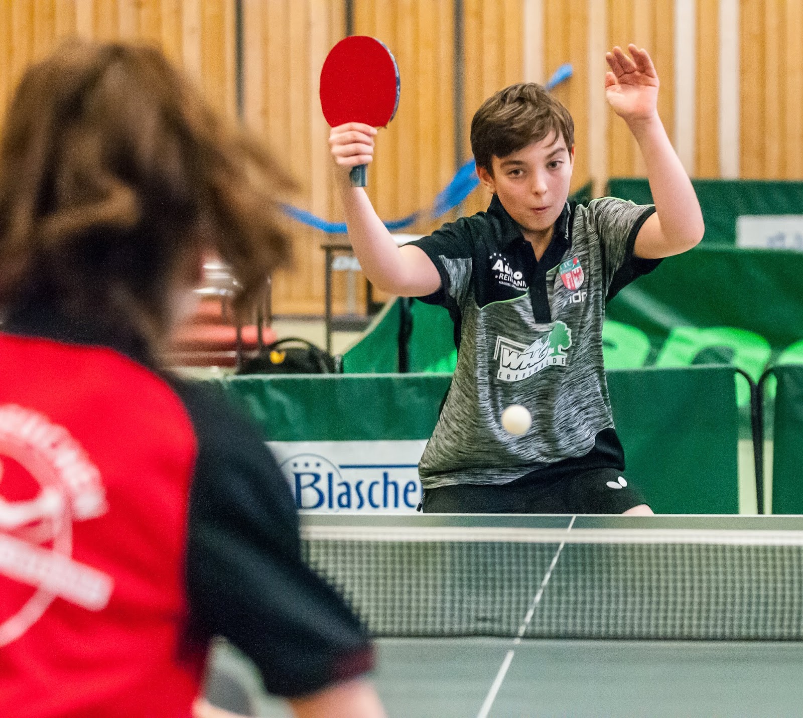 In den Einzeln ging es gleich spannend weiter. Denn Jermain, der überragend von Michelle gecoacht wurde, machte ein klasse Match gegen die Nummer 1 der Gäste, Ottmann. Doch nachdem er seine 10:7 Führung im 5. Satz nicht behaupten konnte, dachten viele das war es. Jedoch behielt Jermain die Nerven und gewann doch noch mit 12:10. Starke Leistung von dem 10-jährigen!