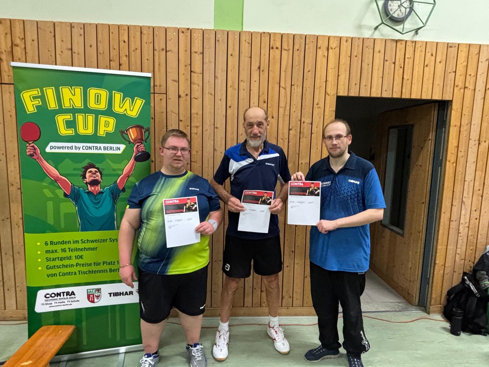 Beim 23. Finow Cup war Dauerbrenner Robert Noack ganz vorn. Der Woltersdorfer gewann ohne Spielverlust das diesmal recht schwach besetzte Turnier. Über den 2. Platz freute sich im ausgeglichenen Feld Angelina Makeyeva vom TTC Düppel. Den 2. Podestplatz erspielte sich Rainer Dulinsky mit Platz 3.