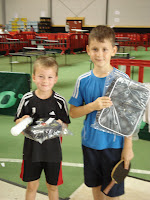 Unsere Jüngsten starteten dann am Samstag beim NRW-Talentcup. Nach den sportmotorischen Tests, wo sich alle drei sehr gut präsentierten, ging es an die Tische. In 3er oder 4er Gruppen im Jahrgang 2002 und jünger mussten sich unsere Talente versuchen zu behaupten. Tom konnte in einer 4er-Gruppe einen Sieg verbuchen und qualifizierte sich mit dem 3. Platz in der Gruppe für die Trostrunde. Basti konnte in einer sehr starken 3er Gruppe einzelne Sätze für sich entscheiden und durfte ebenso in der Trostrunde starten. Diese wurde an Mini-Tischen mit einem Satz bis 15 gespielt. Spannend ging es im KO-System zu. Bis Basti und Tom sich dann im Halbfinale gegenüber standen. Basti entschied den Satz äußerst knapp für sich, musste sich dann im Finale aber gegen den Sohn eines ehemaligen TT-Profis (Grujic) geschlagen geben.