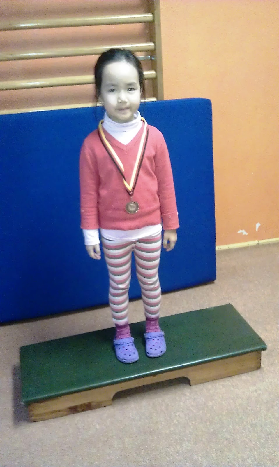 Heute fand die Siegerehrung des vergangenen Halbjahres statt. Alle Kinder konnten sich zumindest über eine Bronzemedaille freuen. Danielle sahnte Silber ab, weil sie sehr viele Aufkleber sammelte. Doch zwei junge Mädchen schafften sogar bei jedem Training die Trainerin zu überzeugen, sodass sie einen Pokal mit nach Hause nehmen konnten.