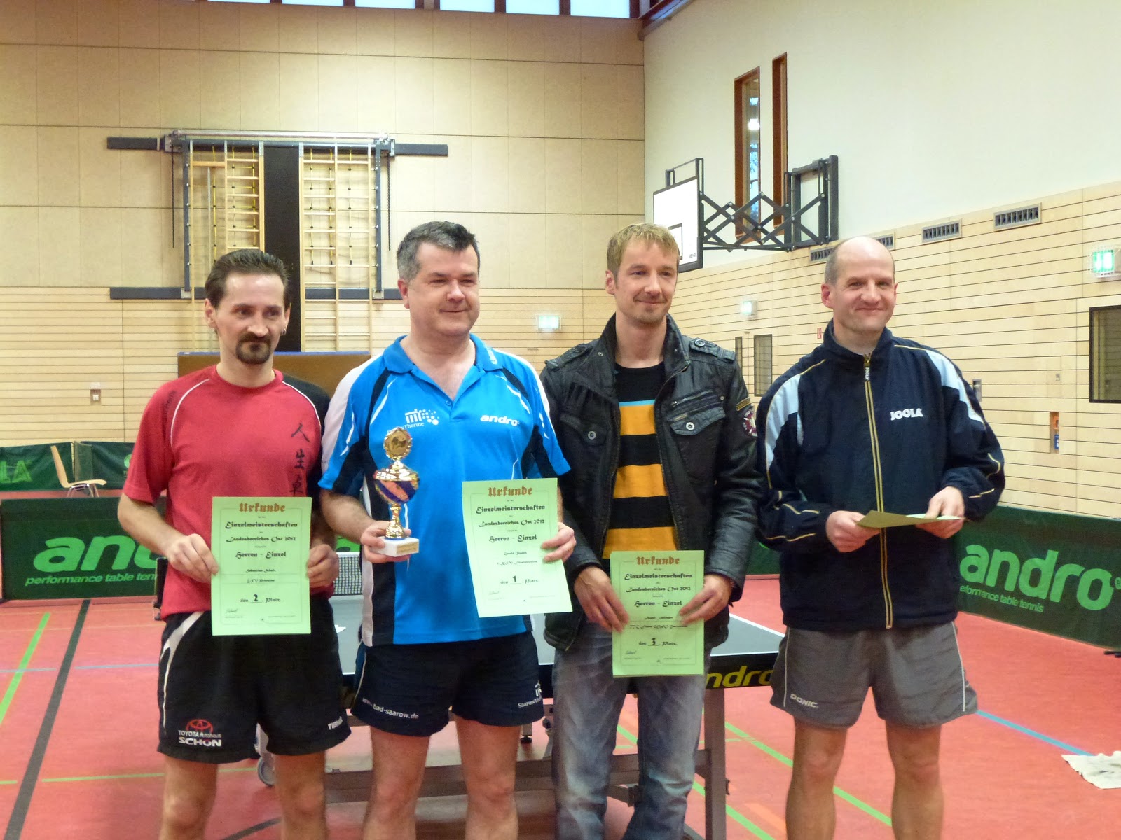 Bei den Herren versuchte Thilo Petreit sich für die LEM zu qualifizieren. In der Gruppenphase musste er sich nur zwei Gegnern stellen. Gegen Moosmann gewann er sehr deutlich, doch gegen den Youngster Mirco Koschei vom Hohen Neuendorfer SV gab es eine 0:3-Niederlage. Im KO-System haderte Thilo dann zu sehr und konnte die guten Ausgangsbedingungen gegen Woite nicht nutzen. André wollte im Hinblick auf die LEM als bereits Qualifizierter etwas Turnierluft schnuppern. Mit dem dritten Rang und einer nur knappen Niederlage im Halbfinale gegen den späteren Sieger und Geburtstagskind Gerald Stamm konnte er einen guten Wettkampf bestreiten.