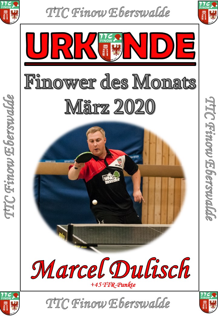 Aufgrund der wenigen Spiele sind es aber letztendlich nur 5 Finower, die in diesem Monat mehr als 20 TTR-Punkte plus machten.