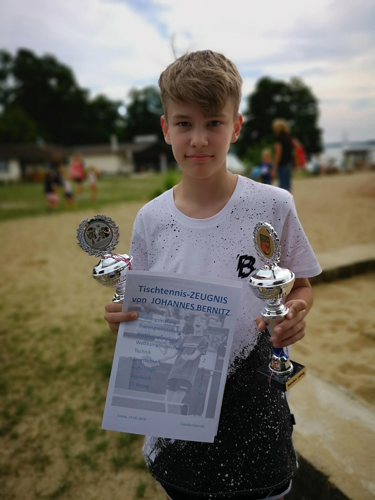 Gleich 2 Pokale gab es für Jojo. Einen Pokal erhielt er für´s beste TT-Zeugnis.