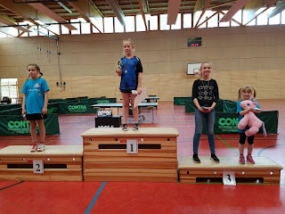 Annelie verlor in ihrer 4er-Gruppe alle Spiele knapp, kam als Gruppenvierter dennoch weiter. Luisa belegte in ihrer 6er-Gruppe ein tollen 3. Platz. Dabei verlor sie meist in der Verlängerung im Entscheidungssatz. Beide zogen so in die KO-Runde ein. Annelie musste gegen die Nummer 1 der andern Gruppe, die bis dahin kein Spiel verloren hatte. Annelie konnte sich mit raffinierten Aufschlägen und einem sichern Spiel den Sieg sichern. Luisa siegte im Viertelfinale fast ohne Probleme 3:1. Nun standen sich beide im Halbfinale gegenüber. Luisa war einen Tick sicherer als Annelie und konnte so 3:0 gewinnen. Im Finale ärgerte Luisa die zwei Jahre ältere Nauenerin. Es hat zwar noch nicht zum Sieg gereicht, dennoch können Luisa und Annelie stolz auf sich sein. Sie haben sich in ihrem ersten großen Wettkampf super geschlagen!