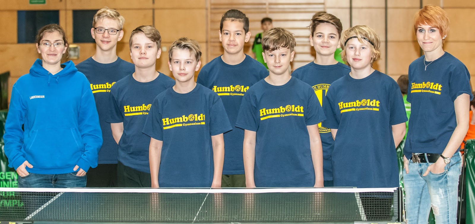 Als Landessieger von Brandenburg hatte sich das Alexander von Humboldt Gymnasium Eberswalde das Startrecht für Berlin erkämpft. In der Schulauswahl des Humboldt Gymnasiums spielen mit Nils, Johannes, Maart, Malte und Joshua, gleich 5 Nachwuchsspieler des TTC. Auch die Lehrerin der Jungs, Claudia Petereit, die den Start des Team organisiert und die Betreuung übernommen hatte, kommt aus unserem Verein.