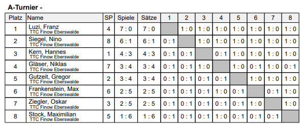 Am Ende standen die ältesten Spieler ganz vorn, wobei der Turniersieg von Franz und seinem Vater Matthias schon überraschend kam. Sie schlugen nämlich die Titelverteidiger Nino und Marcus.
