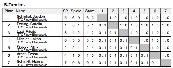 Im A-Turnier fehlten leider einige unserer besten Spieler, so dass auch einige noch jüngere Spieler in die A-Klasse rutschten.