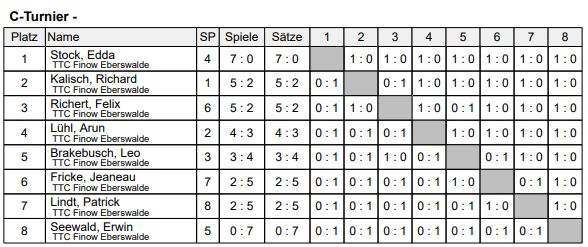 Das C-Turnier wurde von Edda mit ihrem Leihpapa Matti dominiert. Hier war das Miniholz ohne Beläge für Matti wohl noch nicht Handycap genug. 😉