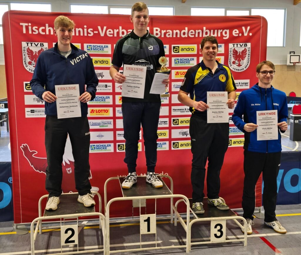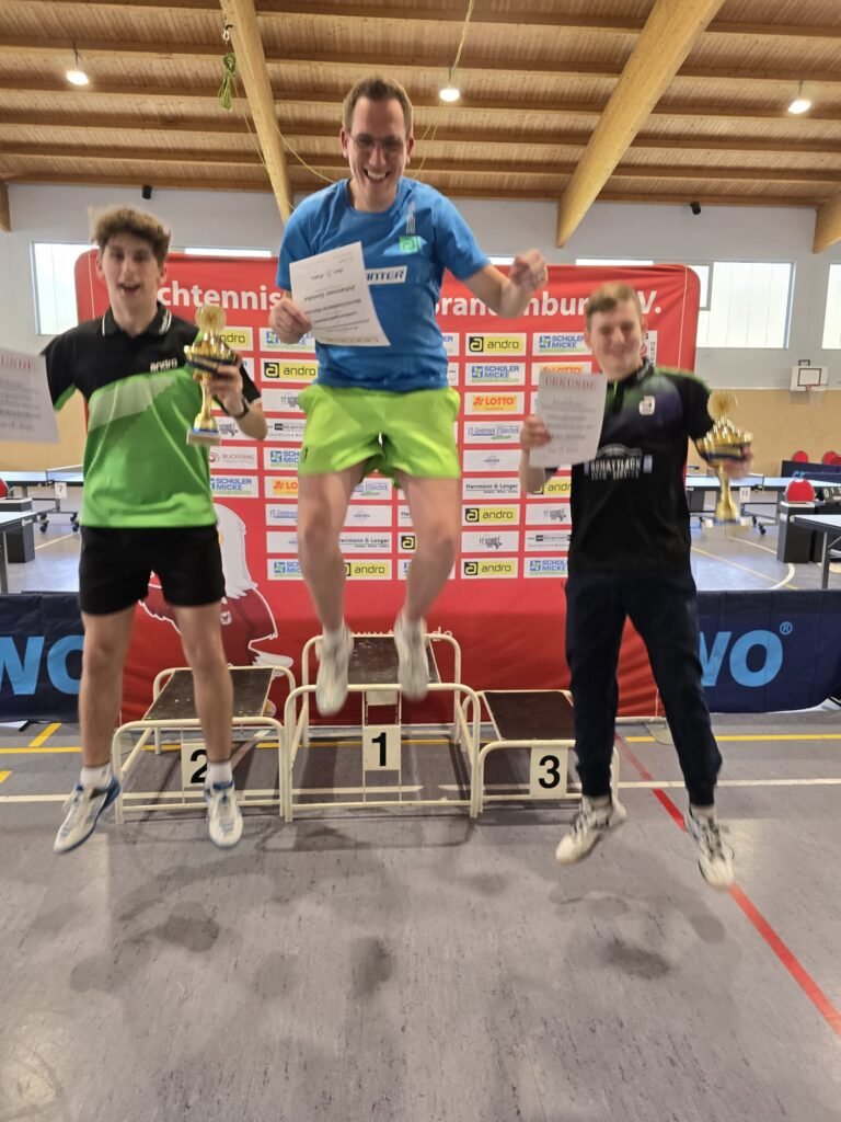 Unsere Herrenmannschaft in der Verbandsebene hatte mit der SG Geltow und dem SV Motor Falkensee zwei sehr starke Gegner. Unser Trio Fabian, Tom und Erik enttäuschte zwar nicht und besonders Fabian konnte gegen Geltow mit zwei Siegen überzeugen, doch am Ende reichte es nach einem 2:4 gegen Geltow und einem 0:4 gegen Falkensee nur zum nicht unerwarteten 3. Platz.