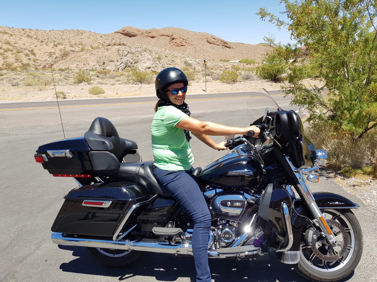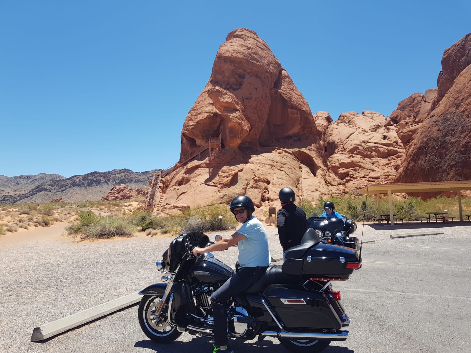 Gabi, Berni, Holm und Erik machten bei 42°C eine 7-Stündige Motorradtour auf einer Harley Davidson durch den Valley of Fire State Park bis hin zum Hoover Dam. Wer nichts mit den zwei Orten anfangen kann denen empfehle ich einen Klick auf die Begriffe, um sich bei Wikipedia von den beeindruckenden Orten zu überzeugen. 😉