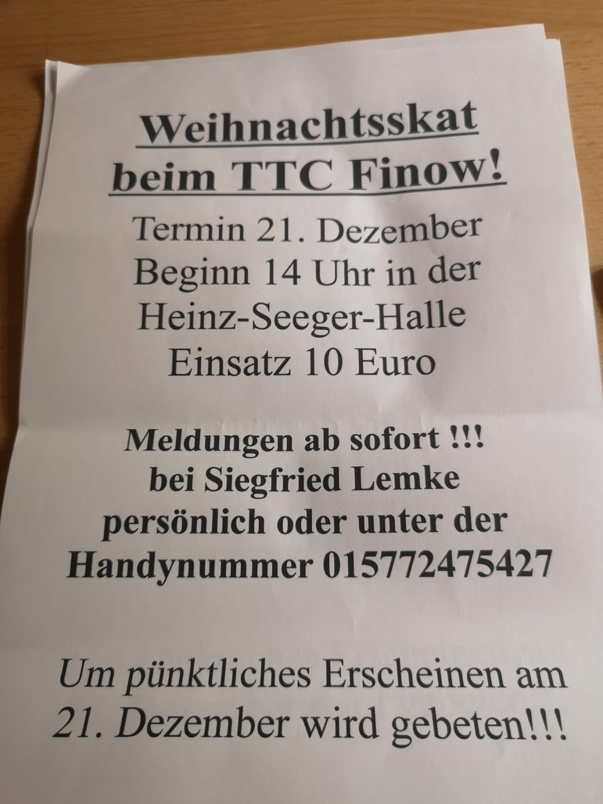 Traditionell findet in jedem Jahr vor Weihnachten unser Vereins Skat-Turnier statt.