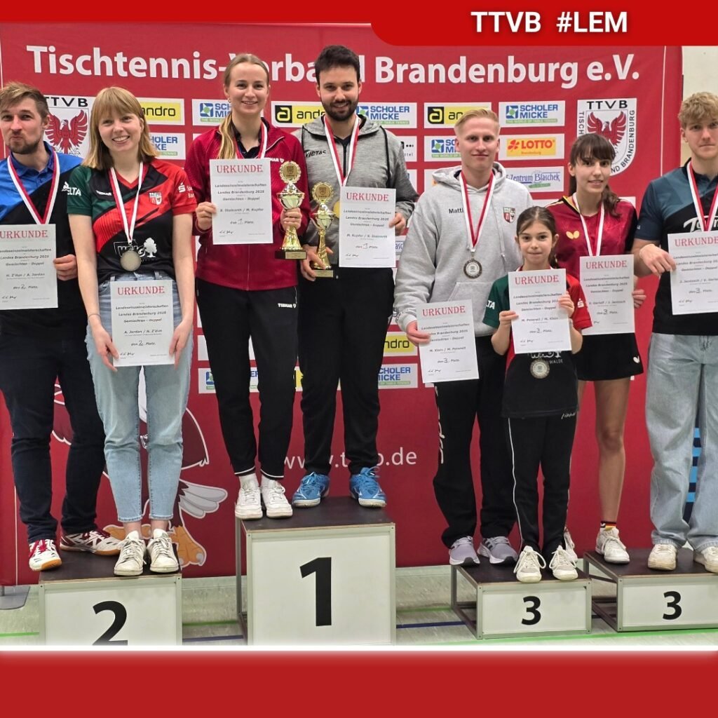 An diesem Wochenende waren insgesamt 11 Mitglieder unseres Vereins bei der Landesmeisterschaft der Damen und Herren aktiv. Mit 5 Treppchenplatzierungen unserer TT-Asse war das Turnier ein großer Erfolg für unseren Verein.