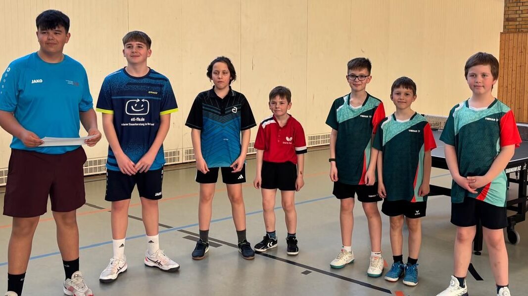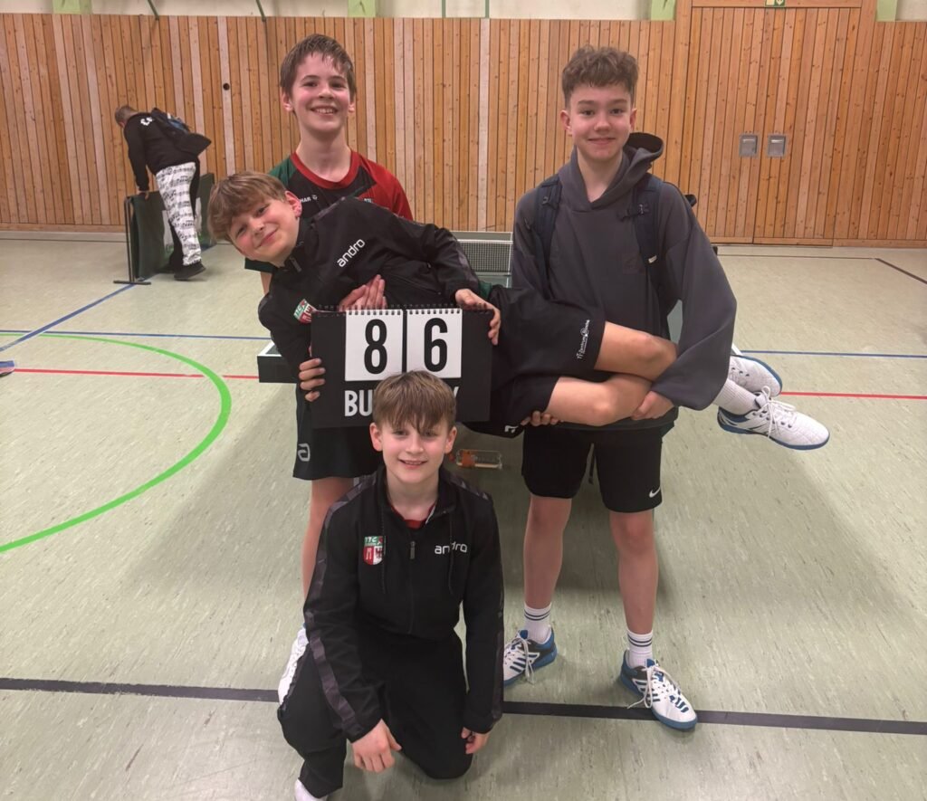 Beim TTV Top Spin Bernau 4 war am Samstagvormittag unsere 5. Schülermannschaft zu Gast. Unser Team war bis dato noch ohne Punktgewinn und wollte gegen den Tabellenvorletzten unbedingt den ersten Sieg erringen. Umso toller war es, dass Tom als Coach angeradelt kam und Finn, Patrick, Elisa und Charlotte super unterstützte. Am Ende gelang dem Team ein überraschend deutlicher 9:1-Sieg. Die Freude war riesig, denn nach vielen Niederlagen wurde nun endlich ein Spiel gewonnen. Glückwunsch an unser tapferes Quartett!