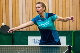Alles wieder ausgeglichen. Es schien sich alles wie am Vortag zu entwickeln. Spannung pur in jeder Runde. Auch im unteren Paarkreuz wieder ein Punkt Unentschieden. Anka gewann gegen Linkshänderin Nuri Venus, während sich Gabi der unangenehm spielenden Stefanie Frauenstein (agressiv Noppe spielend) geschlagen geben musste.