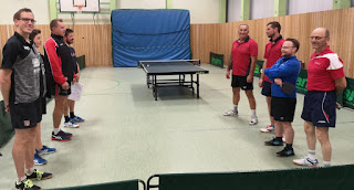 Dieter, Marcel, Frank und Hilmar wehrten sich zwar tapfer, doch rannten nach der ersten Einzelrunde durchweg einem 2-Punkte Rückstand hinterher. Diesen konnten sie leider bis zum Ende nicht mehr aufholen. Knackpunkt war wohl die enge 5-Satz Niederlage von Dieter, der bis dahin alles gewonnen hatte, im letzten Einzel. Sonst wäre wohl auch ein Unentschieden drin gewesen.