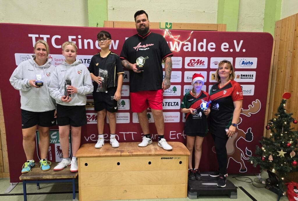 Ein großer Dank geht an Marta und Matti, die mir größtenteils die Turnierleitung abgenommen haben, sowie an unseren Ausrüster TIBHAR für die großartigen Sachpreise. Besonders beeindruckend waren die beleuchteten Pokale, die von Jens Richter aus Finsterwalde hergestellt wurden – ein echter Hingucker!