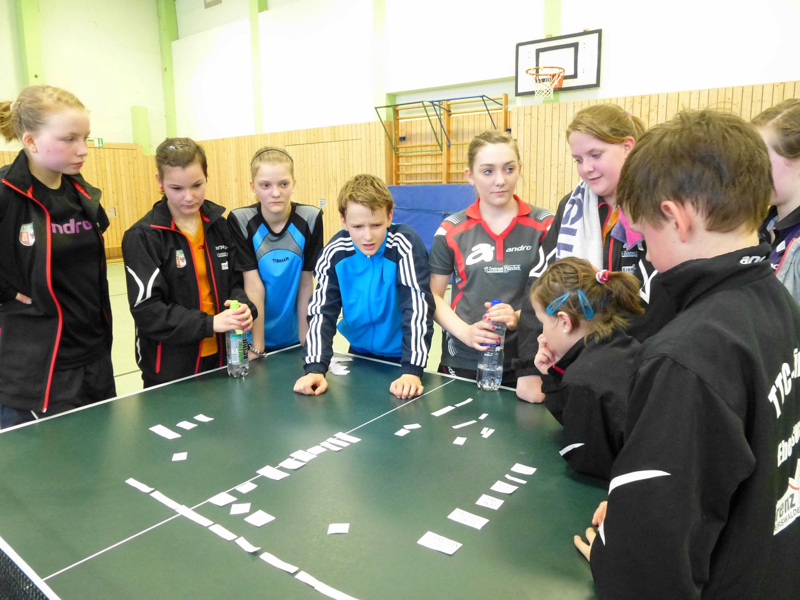 Nach einem individuellen Einspielprogramm und Techniktraining am Balleimer wurden die erworbenen Theorie-Inhalte nochmals zusammengetragen und individuelle Spielsystemübungen praktiziert. Wichtig hierbei ist, dass jeder Spieler über eigene Stärken verfügt und darauf sein ganzes Spiel aufbauen soll. Das Bewusstsein für eigene positive Elemente des Spiels sollte somit geschult werden. Diejenigen die nun bei ihren eigenen Übungen oft verloren haben, sollten nochmals über ihre „Stärke“ nachdenken.
