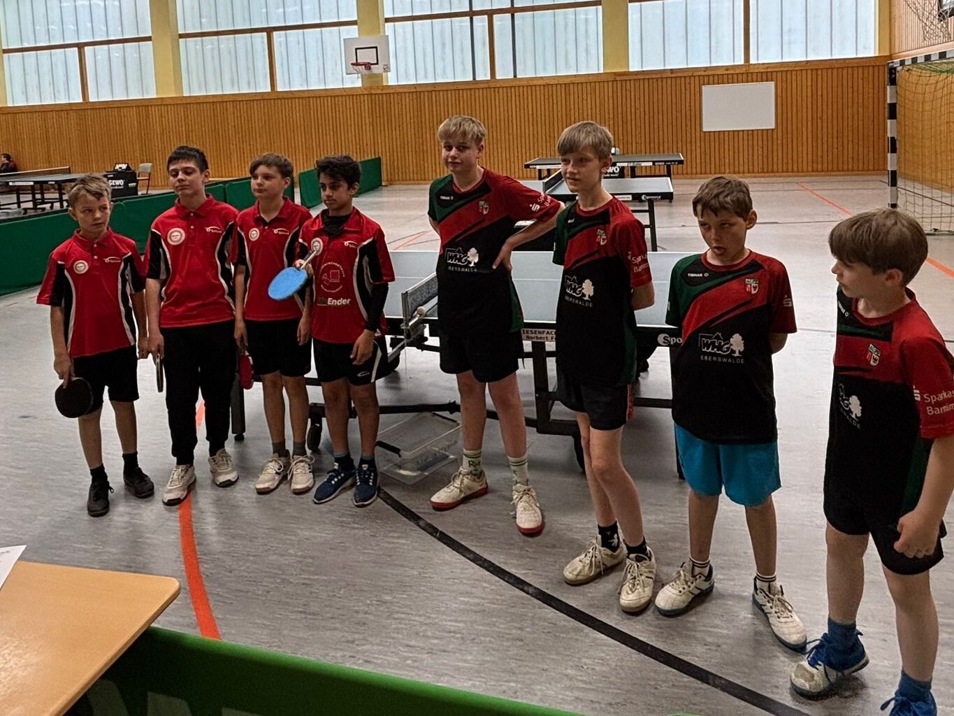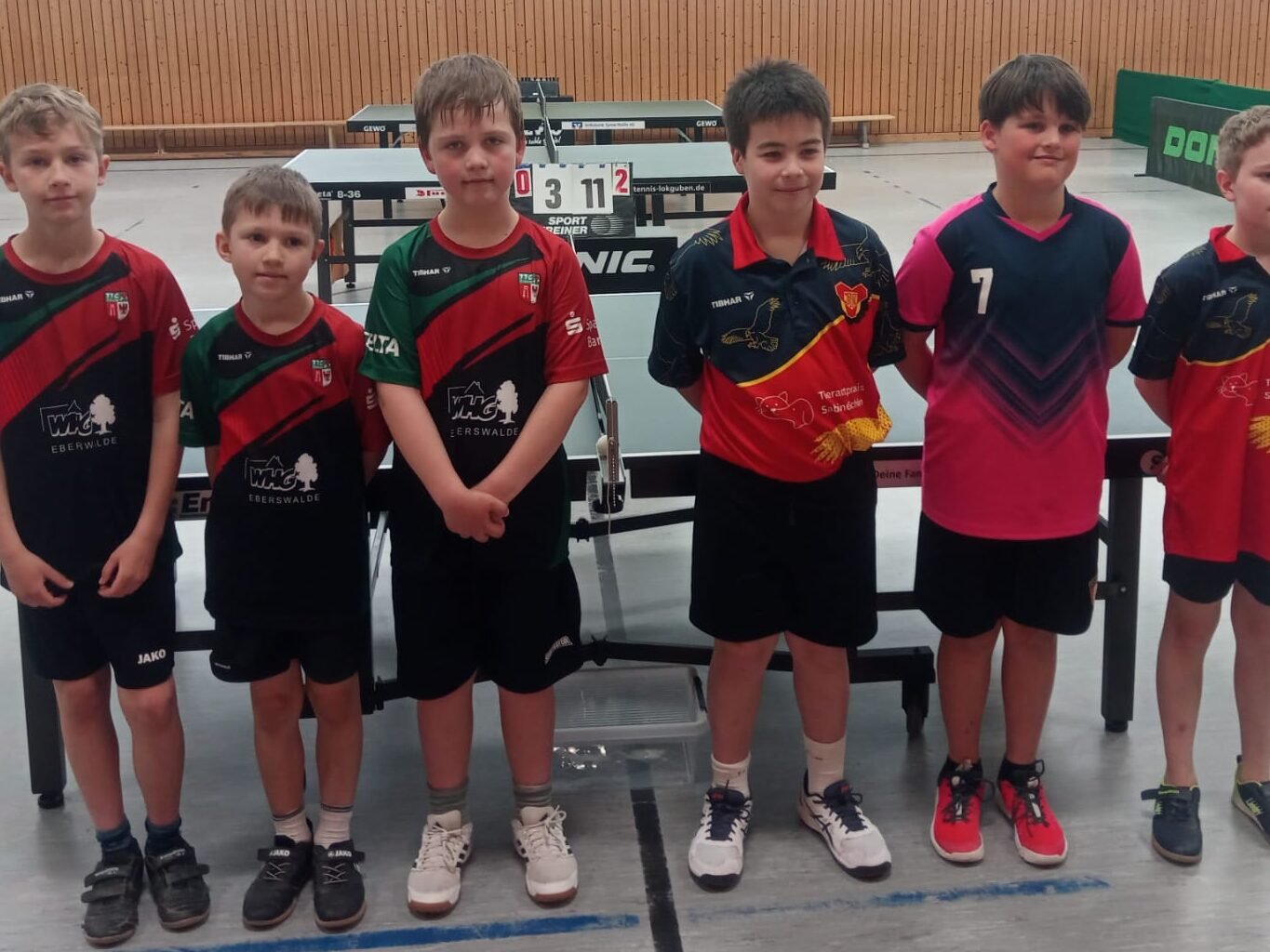 Auch unsere 2. U13-Mannschaft kehrte nicht ganz zufrieden zurück. Gegen die spielstarke Auswahl des TTC Frankfurt (Oder) gab es eine klare 1:6-Niederlage – einzig Oskar konnte hier mit einem Einzelsieg glänzen. Deutlich besser lief es im zweiten Spiel: Gegen den ESV Lok Guben gelang ein überzeugender 5:2-Erfolg. Mit Platz 2 in der Vorrundengruppe verpasste das Team bestehend aus Oskar, Gregor, Max und Niklas dennoch knapp die Qualifikation für die Endrunde.