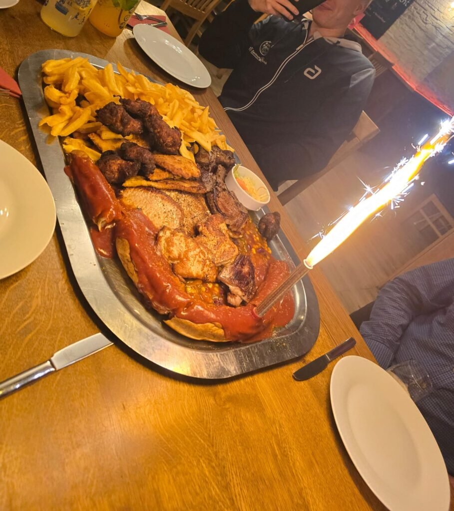 Highlight des Tages war das gemeinsame Essen mit der 1. Mannschaft im Redo XXL, bei der eine 3 KG Fleischplatte + Beilagen gemeinsam verzehrt wurde.