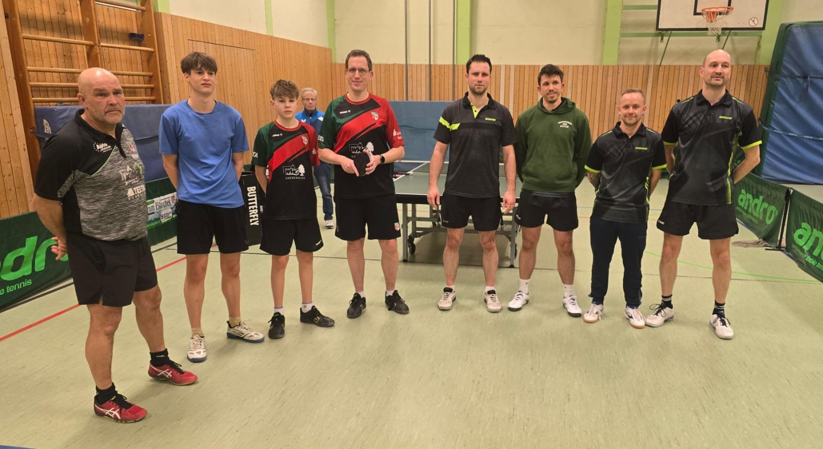 Denn unser Team spielte gut mit und hielt das Spiel ausgeglichen. Doch ärgerlich war besonders die 5-Satzniederlage von Johannes, der mit 21:23 im Entscheidungssatz gegen Jark verlor, sowie auch die 2:3 Niederlage von Mario gegen Jungermann. Erfreulich war ein guter Einstand vom 13-jährigen Hannes, der immerhin einen Einzelsieg herbeisteuerte. Am Ende gab es leider erneut eine 6:8 Niederlage.